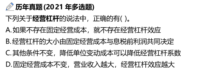 無論營業(yè)收入提高,還是單位變動成本降低,其他因素不變時,都會引起息稅前利潤增加,企業(yè)抗風險能力增強,經(jīng)營杠桿系數(shù)就會降低。