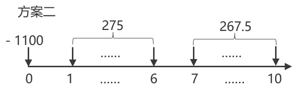 方案二的凈現(xiàn)值=-1100+275×(P/A,12%,6)+267.5×(P/A,12%,4)×(P/F,12%,6)=442.24(萬(wàn)元)