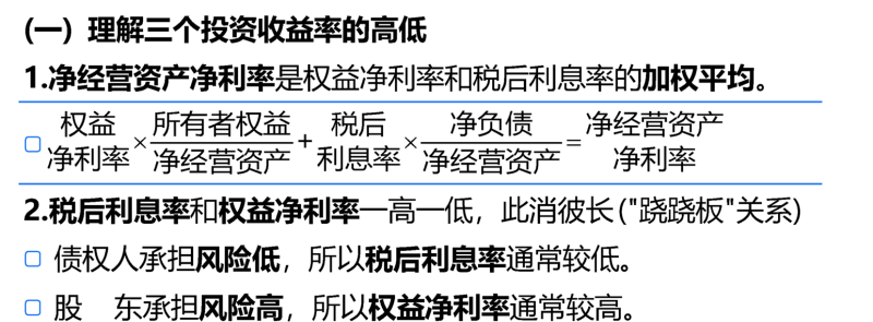 凈經(jīng)營資產(chǎn)凈利率與稅后利息率權(quán)益凈利率關(guān)系咋理解