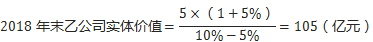 2018年末乙公司股權(quán)價值=105-40=65(億元)