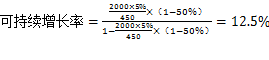 內(nèi)部增長(zhǎng)率=[10%×(1-50%)]/[1-10%×(1-50%)]=5.26%