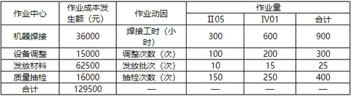 假設經(jīng)作業(yè)分析,該企業(yè)根據(jù)各項作業(yè)的成本動因性質劃分了機器焊接、設備調整、發(fā)放材料和質量抽檢四項作業(yè);各作業(yè)動因及作業(yè)成本發(fā)生額等有關資料如下表: