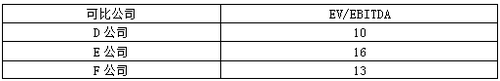 可比企業(yè)平均EV/EBITDA=(10+16+13)/3=13