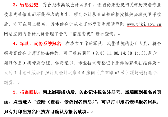 【東奧小編】天津2014年高級會計師考試報名時間為2014年4月15日至22日,采取網上報名的方式,報考人員登陸報名網址“https://www.tjkj.gov.cn”,在網上填寫報名信息,上傳照片和網上繳費。報名期間應注意的事項有: