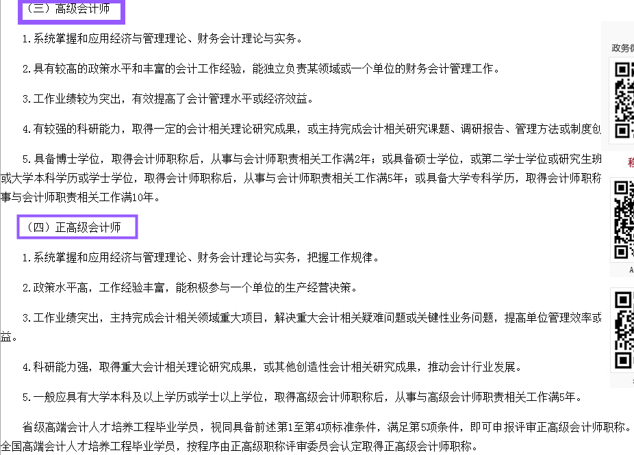 5.具備博士學(xué)位,取得會(huì)計(jì)師職稱后,從事與會(huì)計(jì)師職責(zé)相關(guān)工作滿2年;或具備碩士學(xué)位,或第二學(xué)士學(xué)位或研究生班畢業(yè),或大學(xué)本科學(xué)歷或?qū)W士學(xué)位,取得會(huì)計(jì)師職稱后,從事與會(huì)計(jì)師職責(zé)相關(guān)工作滿5年;或具備大學(xué)??茖W(xué)歷,取得會(huì)計(jì)師職稱后,從事與會(huì)計(jì)師職責(zé)相關(guān)工作滿10年。