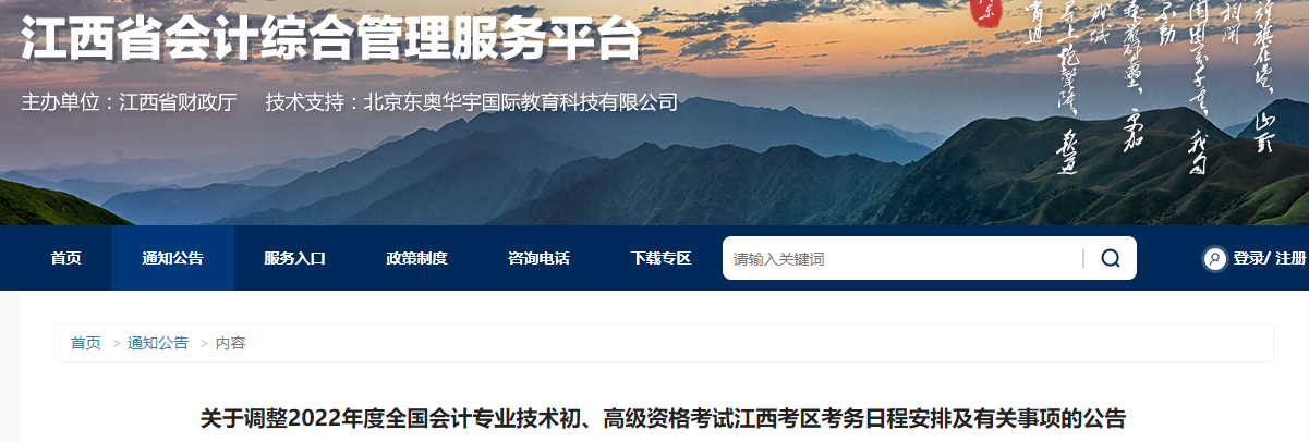 關(guān)于調(diào)整2022年度全國會(huì)計(jì)專業(yè)技術(shù)初、高級資格考試江西考區(qū)考務(wù)日程安排及有關(guān)事項(xiàng)的公告