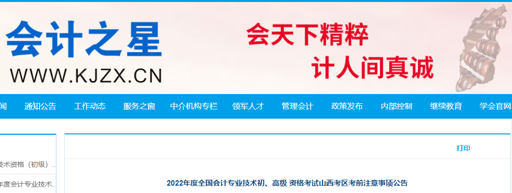 2022年度全國會計專業(yè)技術初、高級 資格考試山西考區(qū)考前注意事項公告