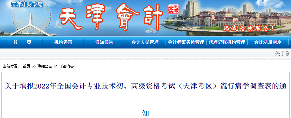 關(guān)于填報(bào)2022年全國(guó)會(huì)計(jì)專業(yè)技術(shù)初、高級(jí)資格考試(天津考區(qū))流行病學(xué)調(diào)查表的通知