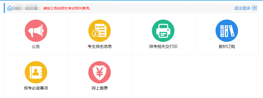 成功登錄系統(tǒng)后,進(jìn)入個(gè)人主頁。鼠標(biāo)移動(dòng)到頁面右上角的頭像,顯示下拉菜單,點(diǎn)擊菜單,可進(jìn)行相應(yīng)的操作。點(diǎn)擊主頁的"網(wǎng)上報(bào)名"菜單,進(jìn)入網(wǎng)上報(bào)名首頁,如下圖所示。