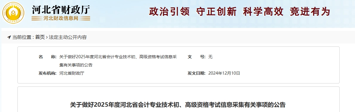 關(guān)于做好2025年度河北省會(huì)計(jì)專業(yè)技術(shù)初、高級(jí)資格考試信息采集有關(guān)事項(xiàng)的公告