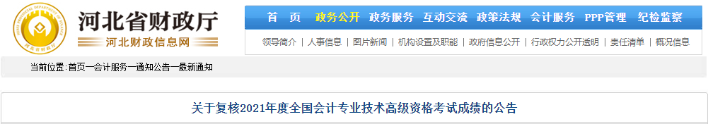 河北省關(guān)于復(fù)核2021年全國(guó)高級(jí)會(huì)計(jì)資格考試成績(jī)