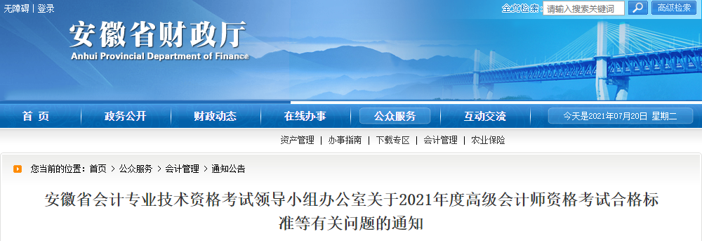 安徽2021年高級會計師考試成績合格標準