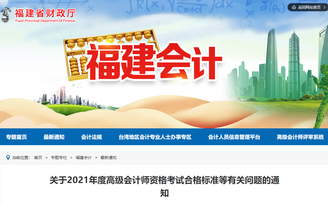 福建2021年高級會計師考試成績合格標準發(fā)布通知,現(xiàn)就2021年度高級會計師資格考試合格標準及有關問題通知如下: