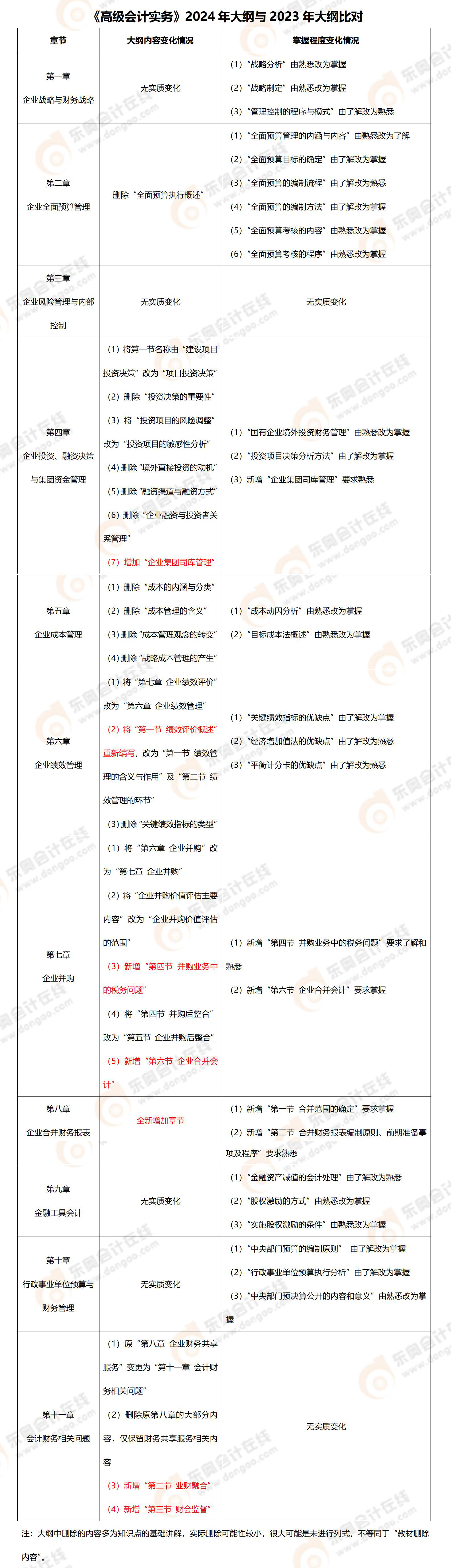 《高級會計(jì)實(shí)務(wù)》2024年大綱與2023年大綱比對>>查看完整版考試大綱<<