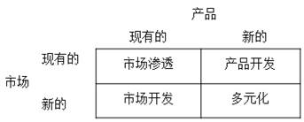 密集型戰(zhàn)略,也稱(chēng)為加強(qiáng)型成長(zhǎng)戰(zhàn)略,是指企業(yè)充分利用現(xiàn)有產(chǎn)品或服務(wù)的潛力,強(qiáng)化現(xiàn)有產(chǎn)品或服務(wù)競(jìng)爭(zhēng)地位的戰(zhàn)略。(企業(yè)成長(zhǎng)矩陣,安索夫矩陣,1975年提出)
