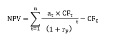 式中:at為t年現(xiàn)金流量的確定當(dāng)量系數(shù),它在0~1之間;為無風(fēng)險(xiǎn)利率(折現(xiàn)率可選擇長期國債的收益率作為替代)。