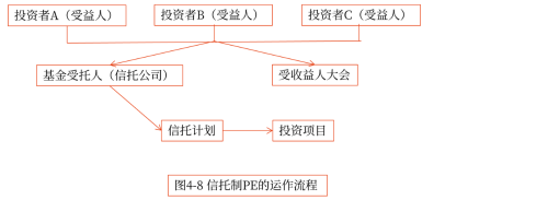 信托制私募股權投資基金,通常分為單一信托基金和結構化信托模式。運營流程基本相同。一般而言,信托公司通常代表所有投資者,以自己的名義對整個私募股權投資項目和基金發(fā)行、管理和運作負責,也就是說,信托公司通常掌握財產(chǎn)運營的權利,但其角色并不完全等同于普通合伙人(GP),其也是作為受益人,出資設立信托基金。