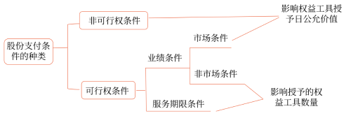 職工或其他方完成規(guī)定服務期限且企業(yè)已經(jīng)達到特定業(yè)績目標才可行權的條件,具體包括市場條件和非市場條件