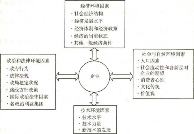 企業(yè)宏觀環(huán)境因素的四個(gè)方面可用圖反映。