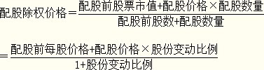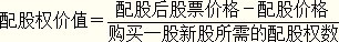 通常配股股權(quán)登記日后要對(duì)股票進(jìn)行除權(quán)處理。除權(quán)后股票的理論除權(quán)基準(zhǔn)價(jià)格為: |
