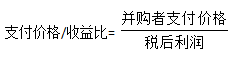 支付價格是指在類似并購交易中,并購企業(yè)為交易標(biāo)的支付的購買價格;稅后利潤是指與目標(biāo)企業(yè)類似的被并購企業(yè)并購前(或平均)稅后利潤。計算出類似交易中被并購企業(yè)的支付價格/收益比,乘以目標(biāo)企業(yè)的當(dāng)前稅后利潤,即可得出目標(biāo)企業(yè)的估值。
