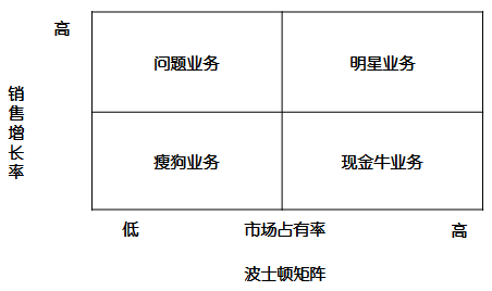 波士頓矩陣是美國波士頓咨詢公司(BCG)在1960年為一家造紙公司做咨詢而提出的一種投資組合分析方法,這種方法是把企業(yè)生產(chǎn)經(jīng)營的全部產(chǎn)品或業(yè)務(wù)組合作為一個整體進行分析,通常用來分析企業(yè)相關(guān)經(jīng)營業(yè)務(wù)之間現(xiàn)金流量的平衡問題,以便將企業(yè)有限的資源有效地分配到合理的產(chǎn)品結(jié)構(gòu)中去。
