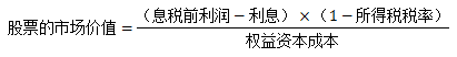 為了計算方便,設長期債務(長期借款和長期債券)的現(xiàn)值等于其面值;股票的現(xiàn)值則等于其未來的凈收益按照股東要求的報酬率貼現(xiàn)。