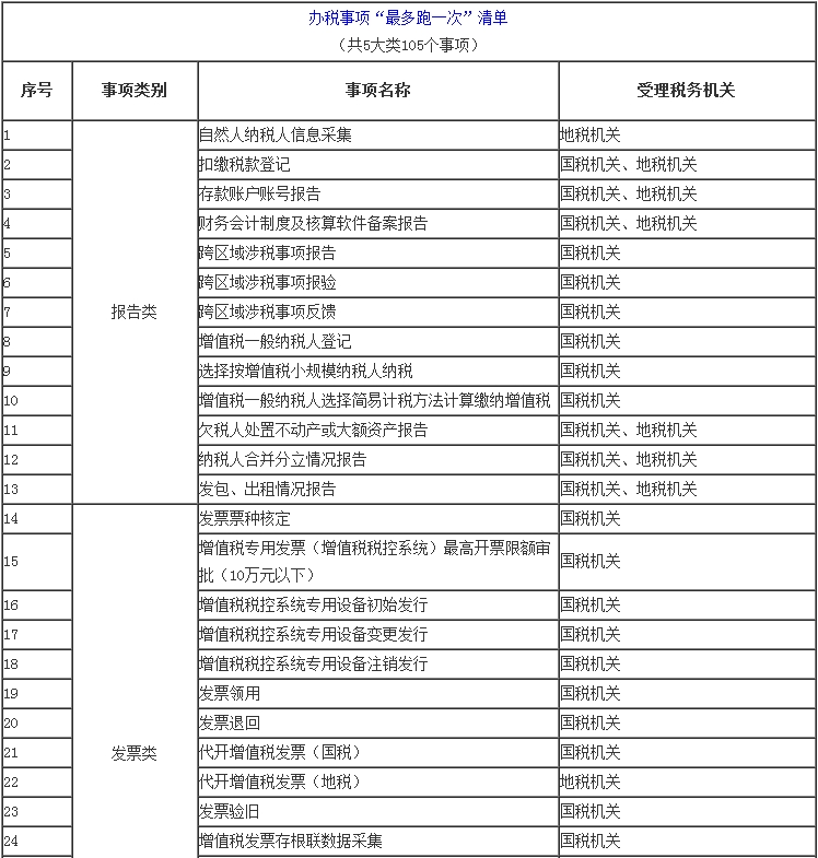 附件:辦稅事項(xiàng)“最多跑一次”清單