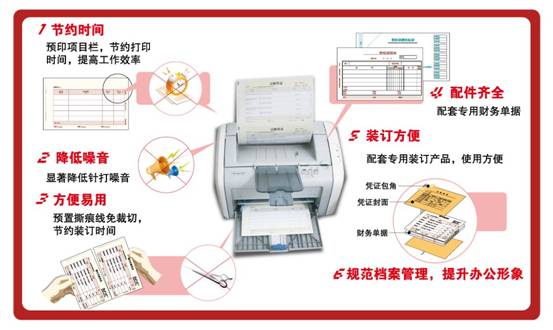 ●激光憑證特點(diǎn):以彩色頁面設(shè)計(jì),突破傳統(tǒng)賬簿的沉悶形象,時尚美觀,更具時代感,支持各種激光/噴墨打印機(jī)。預(yù)印表格,降低約60%的打印量,特別適合于使用激光/噴墨打印機(jī)的用戶,快速打印大量表單。精美的印刷效果非普通激光/噴墨打印機(jī)可比。預(yù)置分頁切痕,打印完成后無需裁紙刀,使用方便。
