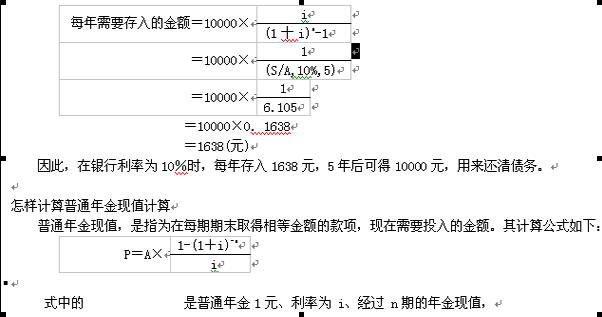 由于有利息因素,不必每年存入2000元(10000÷5),只要存入較少的金額,5年后本利和即可達(dá)到10000元,可用以清償債務(wù)。