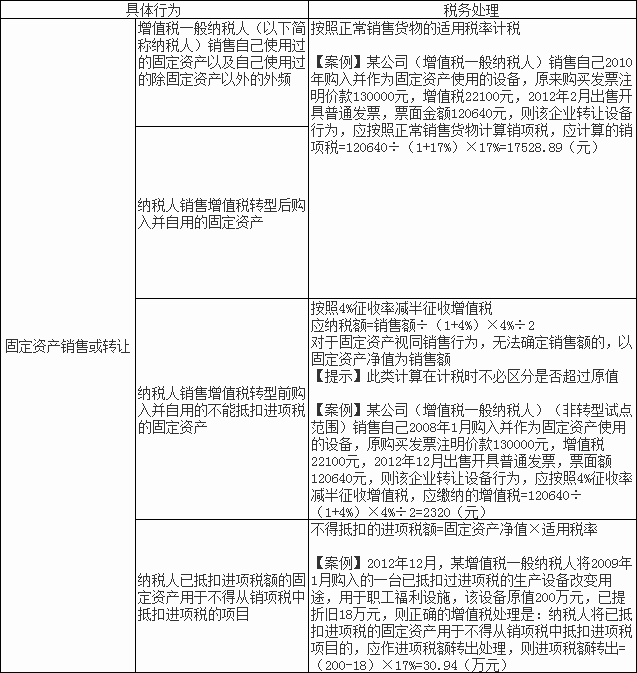 納稅人轉(zhuǎn)讓允許抵扣進項稅的固定資產(chǎn)(有形動產(chǎn)類固定資產(chǎn)),不論是否抵過進項,轉(zhuǎn)讓時按規(guī)定稅率計算銷項稅;納稅人轉(zhuǎn)讓不允許抵扣進項稅的固定資產(chǎn)(有形動產(chǎn)類固定資產(chǎn)),轉(zhuǎn)讓時按照4%征收率計算增值稅再減半。