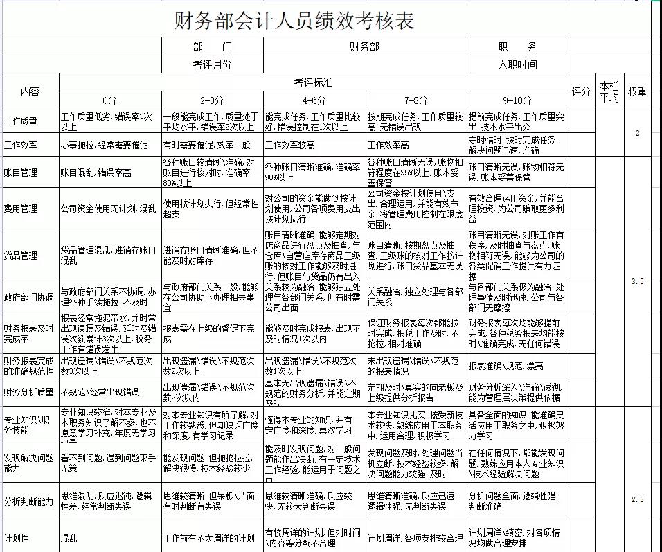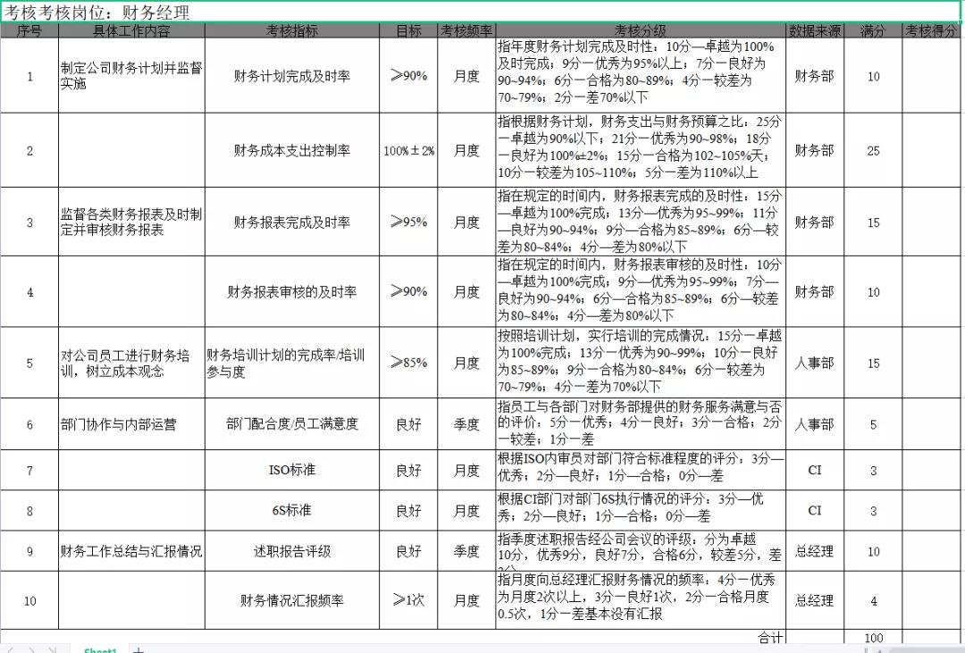 包含財(cái)務(wù)人員績(jī)效考核表、財(cái)務(wù)經(jīng)理KPI考核指標(biāo)、會(huì)計(jì)績(jī)效考核表。