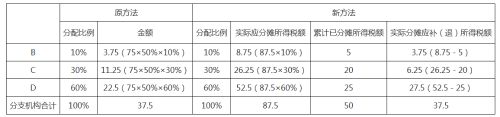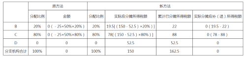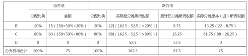 需要說明的是,匯總納稅企業(yè)如果不存在注銷分支機構(gòu)、分攤稅款計算不準確等情形,無論按原計算方法,還是按新計算方法,結(jié)果都是一樣的。但是,若匯總納稅企業(yè)前期預繳環(huán)節(jié)未準確計算分攤稅款或當季發(fā)生分支機構(gòu)注銷情形,新計算方法將通過全量分攤方式,對全年分攤稅款重新計算。案例中,由于第二季度發(fā)現(xiàn)第一季度C、D分支機構(gòu)分配比例計算錯誤,在第二季度申報時按照新方法計算的C分支機構(gòu)應補稅額比原方法少5萬元;D分支機構(gòu)應補稅額比原方法多5萬元;B分支機構(gòu)分配比例沒有錯誤,兩種方法計算結(jié)果一致。D分支機構(gòu)注銷后,需重新計算分配比例,在第三季度申報時按照新方法計算的B分支機構(gòu)應補稅額比原方法少1.75萬元,C分支機構(gòu)應補稅額比原方法多1.75萬元。