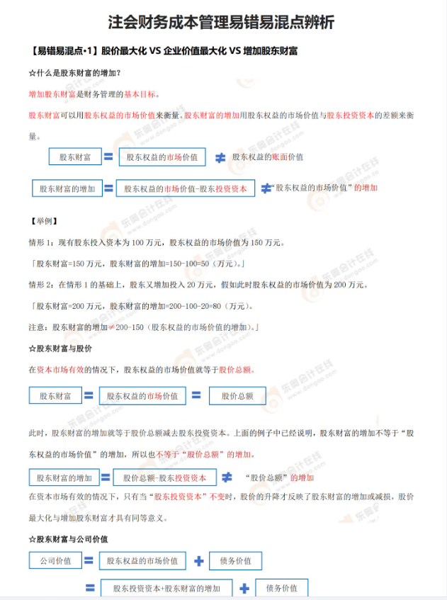財(cái)務(wù)成本管理當(dāng)中 ,股價(jià)最大化vs企業(yè)價(jià)值最大化vs增加股東財(cái)富,類似于這樣的容易混淆的知識(shí)點(diǎn),常常令大家頭大,為了幫大家節(jié)省整理的時(shí)間,奧奧匯總了注會(huì)6科知識(shí)點(diǎn)混淆辨析總結(jié),把有限的時(shí)間用在刀刃上,趕快學(xué)起來(lái)!