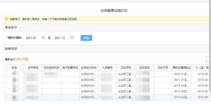 點(diǎn)擊首頁(yè)圖標(biāo)【社保繳費(fèi)證明打印】,顯示如下界面: