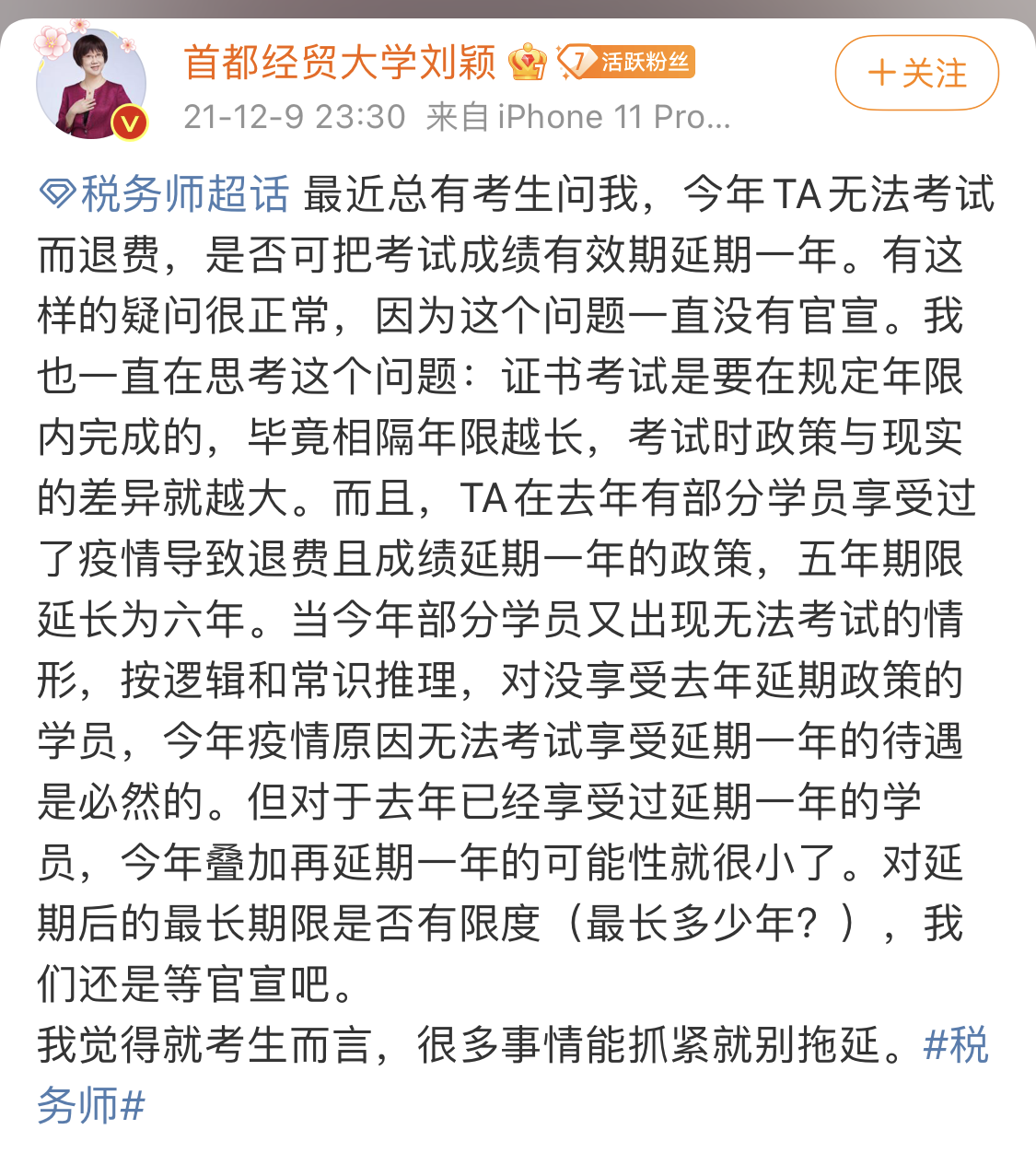 二、稅務(wù)師延考退費(fèi)考生成績(jī)管理周期延長(zhǎng)嗎?