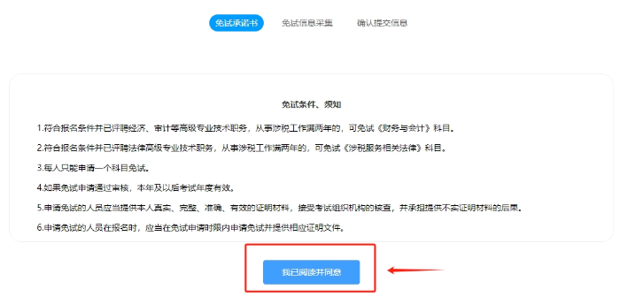 步驟三:閱讀免試承諾書(shū),點(diǎn)擊“我已閱讀并同意”;