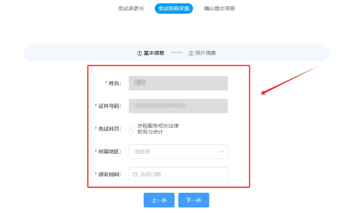 步驟二:進(jìn)入“免試申請(qǐng)”頁(yè)面;