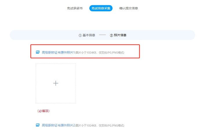 步驟五:上傳符合要求的高級(jí)專業(yè)技術(shù)職稱證書(shū)信息頁(yè)照片。然后確定信息并提交即可。