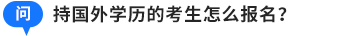 答:持國(guó)外學(xué)歷報(bào)名的首次報(bào)名人員,需要輸入國(guó)外學(xué)歷認(rèn)證書編號(hào)。考生可前往教育部留學(xué)服務(wù)中心申請(qǐng)認(rèn)證。已取得國(guó)外碩士及以上學(xué)歷但沒有認(rèn)證,如在國(guó)內(nèi)已取得大專及以上學(xué)歷的考生,可以使用國(guó)內(nèi)學(xué)歷報(bào)名。