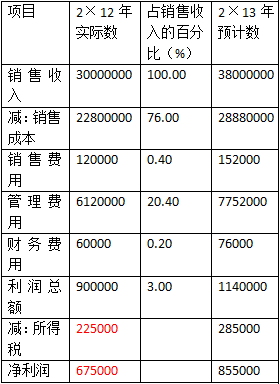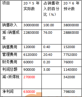 若該企業(yè)2×13年度預(yù)計銷售額為38000000元,則20×6年度預(yù)計利潤表可測算如表3-2所示。
