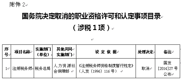2.國務院決定取消的職業(yè)資格許可和認定事項目錄(涉稅1項)