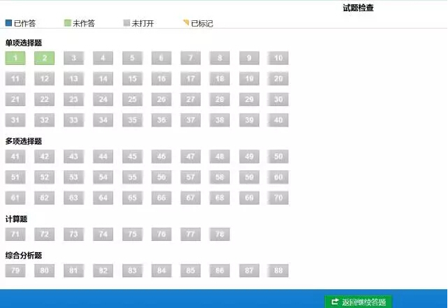 如果要查看答題情況,或者快速選擇某一題,您可以點(diǎn)擊“選題”按鈕,會(huì)出現(xiàn)如下界面。