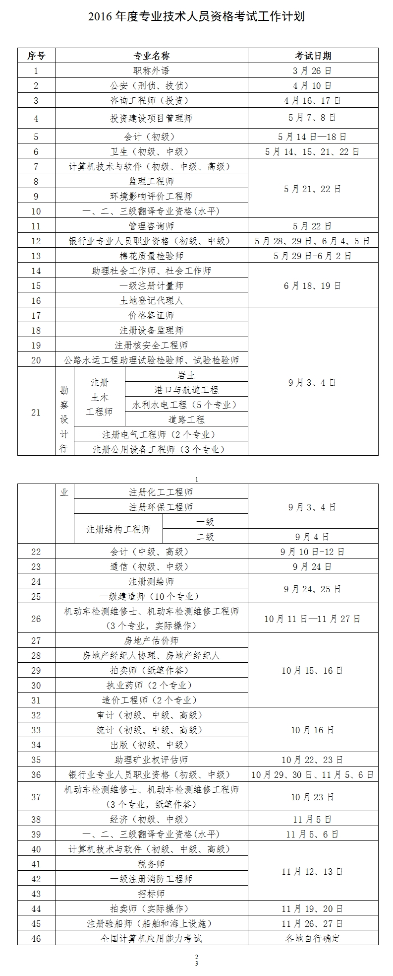 附件:2016年度專業(yè)技術(shù)人員資格考試工作計劃