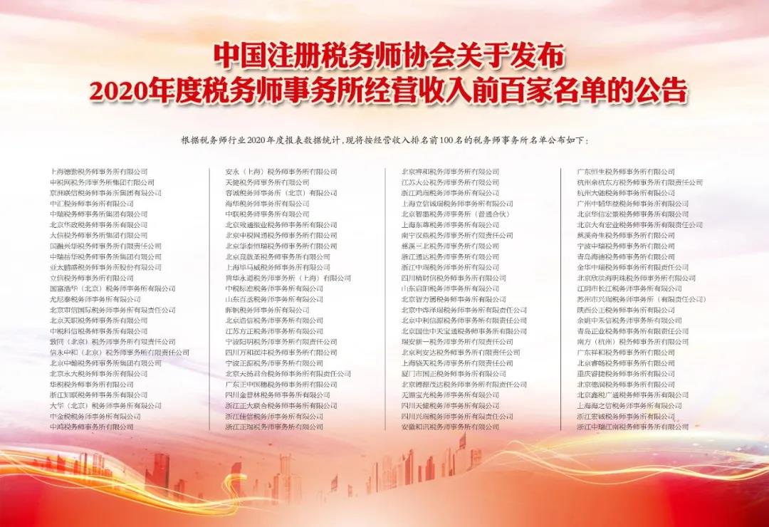 2020年度稅務(wù)師事務(wù)所經(jīng)營收入“百強(qiáng)”名單發(fā)布