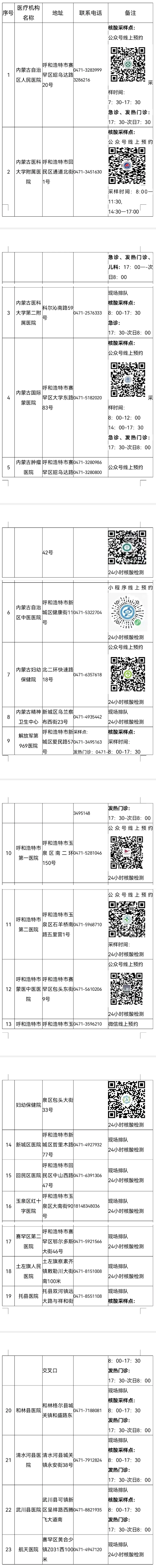 附:呼和浩特市開展新冠病毒核酸檢測醫(yī)療機構(gòu)