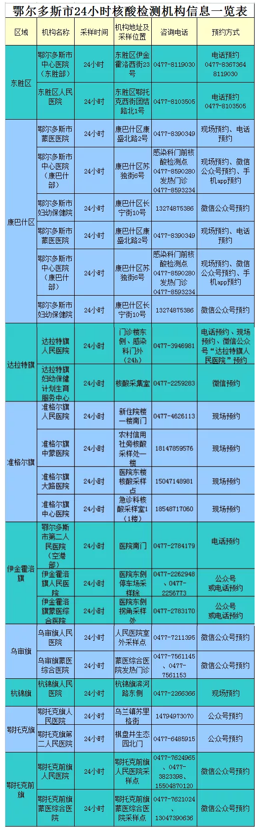 為方便各地考生進行核酸檢測,內(nèi)蒙古稅協(xié)整理了呼和浩特市、鄂爾多斯市、包頭市及赤峰市的核酸檢測機構(gòu)信息,請大家檢測時提前查看相關(guān)信息。
