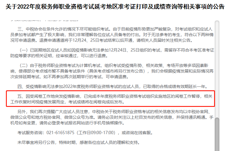 各位應(yīng)試人員大家好!2022年度稅務(wù)師職業(yè)資格考試及第一次延期考試已組織實(shí)施完畢。由于稅務(wù)師職業(yè)資格考試有主觀題科目,為保障考試成績的準(zhǔn)確公平,閱卷組織必須具備嚴(yán)格的條件,需滿足場地、人員、技術(shù)及安保等多方面要求。由于疫情影響,閱卷場所始終處于封閉狀態(tài),無法正常有效地開展工作。