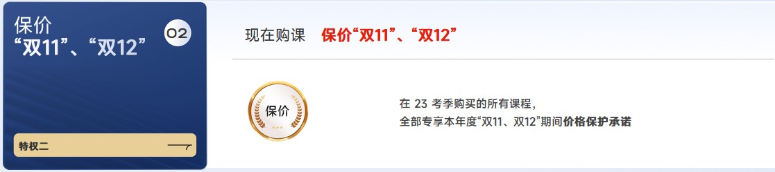 在23考季購買的所有課程,全部專享本年度“雙11、雙12”期間價(jià)格保護(hù)承諾