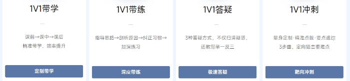 搭配1V1指導(dǎo)解題思路,搭建解題框架、提取關(guān)鍵點(diǎn);剖析錯題原因,針對薄弱,定向補(bǔ)習(xí);糾正錯誤習(xí)慣,1V1月考判卷,避免細(xì)節(jié)失分。
